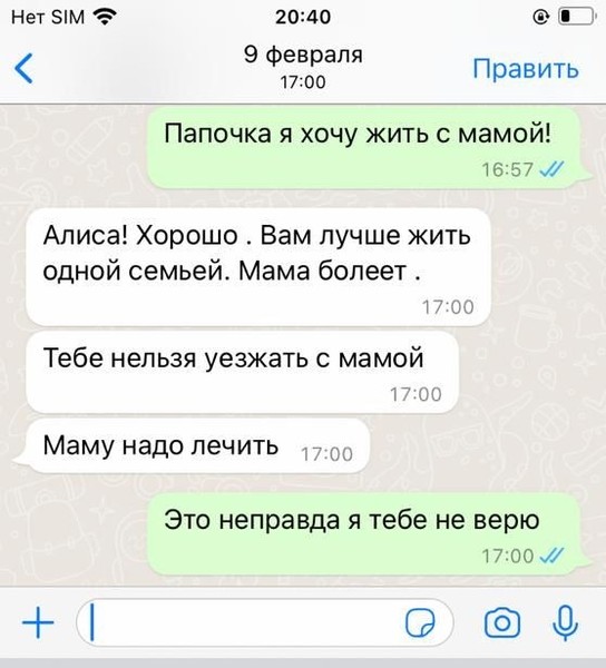 Это бесполезно, я всех заблокировала. Но идет жесткий контроль с их стороны. Они меня отслеживают, прослушивают. Сейчас, насколько я знаю, готовят документы в суд, чтобы ограничить меня в родительских правах и положить в специализированное учреждение. Считают, что я недееспособна, а мое психическое состояние не позволяет мне воспитывать детей. Я общалась с врачами, все говорят, что нет у меня никаких расстройств. За что мне все это — я не знаю.