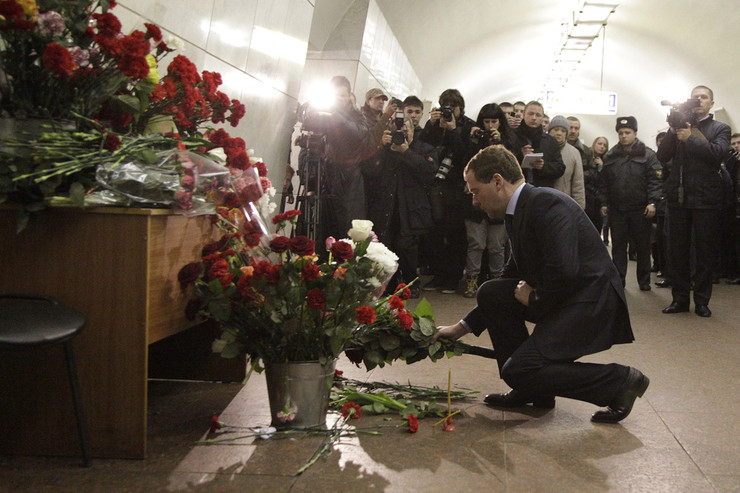 Ежегодно в день памяти люди приносят цветы к мемориалуПосле взрывов с места трагедии было оперативно эвакуировано 3,5 тысячи человек. Ликвидацией последствий занимались 657 человек из подразделений МЧС, ФСБ и МВД. В столице ввели план «Вулкан», усилили паспортный режим, увеличили плотность патрулирования, а все местные вокзалы и аэропорты взяли под особую охрану. Уже в 17:09 метро снова функционировало.