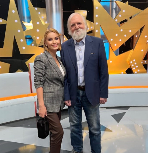 «Вчера была на съемках передачи «Звезды сошлись» на НТВ, которую вы увидите в воскресенье вечером. Обязательно посмотрите. На фото со мной Александр Бялко — российский журналист, литератор, игрок телеклуба «Что? Где? Когда?». По образованию он физик-ядерщик, кандидат физико-математических наук.