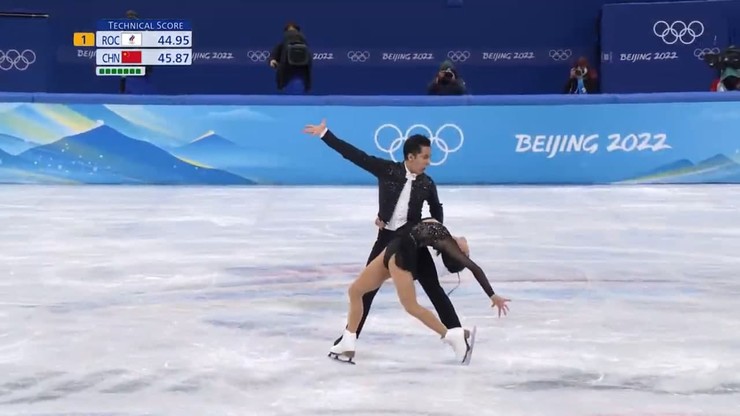 Евгения Тарасова — Владимир Морозов У наших пар появились конкуренты. Китайцы показали прекрасный прокат. Были небольшие помарки, но все равно было здорово, ничего не скажешь. Чистый тройной тулуп, затем тройной флип на выбросе. Они стали лидерами — 84.41.