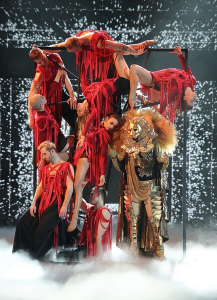 За кулисами привычная рабочая суета, только в этот раз с уклоном в сторону королевского: повсюду золото, блестки, перья, лежит огромная корона. Даже гримируют певца не на каком-нибудь стуле, а на настоящем троне с красной обивкой, возвышающемся на постаменте.