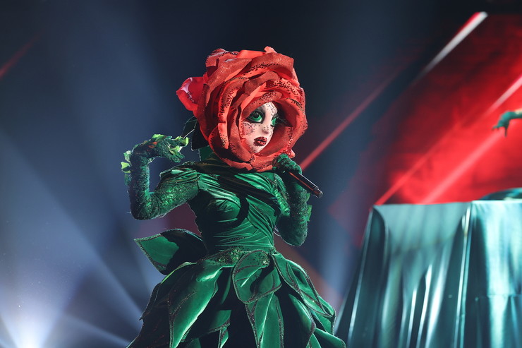 Одна из масок — Роза Чайная Чуть позже селебрити, скрывавшаяся внутри (это было очень внезапно!), расскажет нам, что «давно мечтала побывать в шкуре какой-нибудь маски и испытать, каково это». А еще она решила сделать по мотивам образа платье — только в облегченной версии, так как оригинал сильно тянет спину.