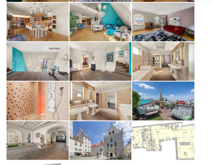 На втором этаже есть галерея, а также гостиная со спальней, большой ванной комнатой, паровой баней, шкафом и туалетом. Особой изюминкой апартаментов является просторная терраса на крыше с прекрасным видом на собор Святого Стефана. Квартира хорошо оборудована, имеет два открытых камина, кондиционер, две отдельные системы отопления», — говорится в объявлении.