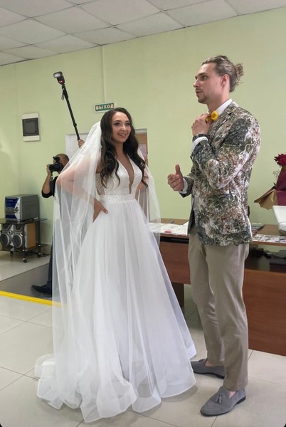 Василий Рыбин и Дарья Алябьева вместе с 14 лет Пара тщательно подошла к подготовке важного дня. Невеста буквально сияла в белоснежном платье с глубоким декольте, а жених остановил свой выбор на ярком пиджаке с пестрым принтом, дополнив наряд ярко-желтым галстукм-бабочкой и серыми замшевыми лоферами. Роскошную шевелюру Рыбин-младший собрал в небрежный пучок — аутфит получился вполне расслабленным.