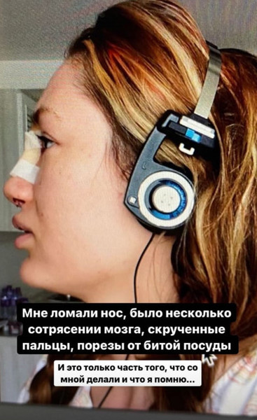 Алена не стала скрывать, что экс-супруг ломал ей нос, бил по голове, из-за чего у нее диагностировали сотрясение мозга.