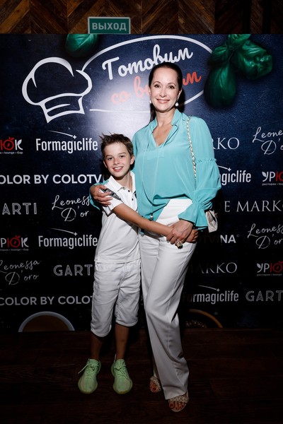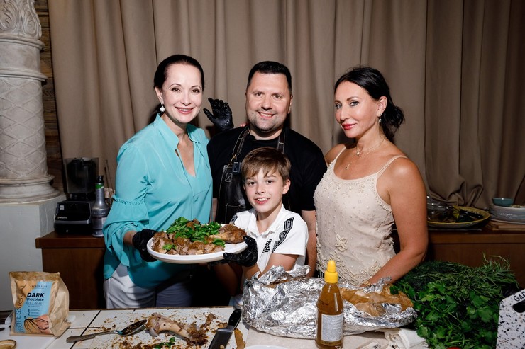 Ольга Кабо с сыном ВикторомЕще одним фаворитом вечера стало блюдо, которое приготовили актрисы Ольга Кабо и Алика Смехова. Лопатка ягненка, запеченная с шоколадной крошкой произвела фурор среди гостей мероприятия, которые отметили необычное сочетание мяса с шоколадом.