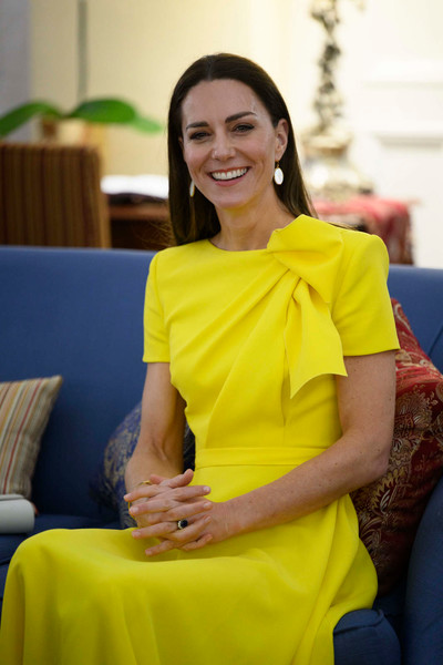 Далее Кейт и Уильям отправились в Кингстон, и там уже от Миддлтон невозможно было оторвать взгляды. За время короткой поездки герцогиня Кембриджская сменила три наряда. Самым обсуждаемым стало, конечно, желтое платье, которое безупречно сидело на супруге будущего короля. Яркий наряд классического силуэта удостоился лестных слов от модных экспертов по всему миру.