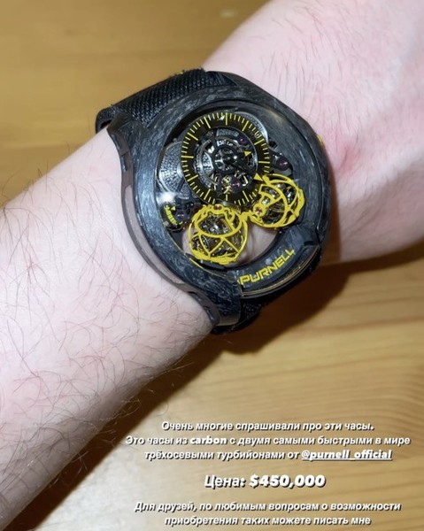 Так, он похвастался часами из карбона с двумя самыми быстрыми в мире трехосевыми турбийонами от швейцарской компании Purnell. Димаш не стал скрывать стоимость дорогостоящей вещи — 450 тысяч долларов, что составляет почти 50 миллионов рублей. За эти деньги в Москве можно купить несколько квартир.