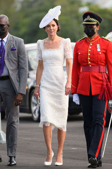 Принц Уильям и Кейт Миддлтон посетили военный парад в столице Ямайки. Пара эффектно прибыла на церемонию, стоя на заднем сиденье Land Rover, как это когда-то сделали Елизавета II и принц Филипп во время своего визита в Кингстон.