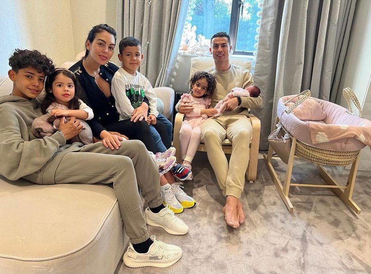 И сегодня КриРо поделился в соцсетях снимком, на котором изображена вся семья — его избранница Джорджина Родригес, четверо детей: Криштиану-младший, близнецы Ева и Матео, Алана Мартина и недавно появившаяся на свет дочь, имя которой пока неизвестно.