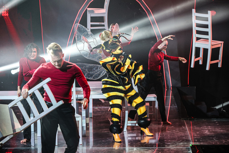 Жюри не скрывают эмоцийВсеми любимый Монстрик сегодня нацепил корону и решил зачитать предвыборную речь на пост финалиста. Кроме того, мохнатый герой показал видео с репетиции, во время которой упал со сцены. Курьезный случай Монстрик прокомментировал: «Хорошо, что мозгов нет, а то было бы сотрясение».