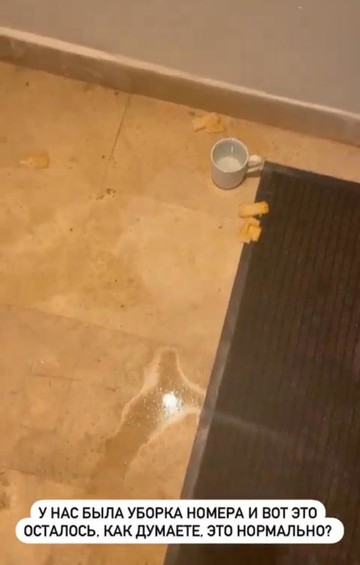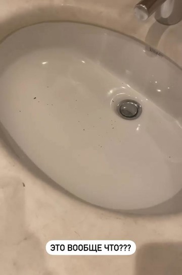 В личном блоге брюнетка показала, оставшуюся грязь после уборки номера. Волкова обнаружила на полу печенье, которое оставила ее дочь для кошки еще вчера и огромную лужу. Неприятный сюрприз звезду ждал и в ванной. В раковине оказались крошки плесени. Работники пытались отковырять налет, но так и не завершили начатое, только ухудшив ситуацию.