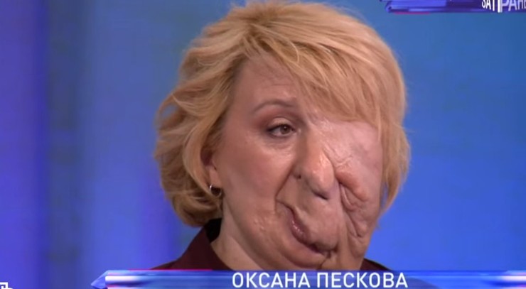 38-летняя Оксана Пескова пришла в студию телеканала НТВ, чтобы рассказать свою драматическую историю. В раннем детстве у нее в глазу нашли новообразование. Врачи посоветовали удалить его, так как оно могло повлиять на зрение. Но после хирургического вмешательства левая половина лица начала опускаться и на этом месте выросла гигантская опухоль.