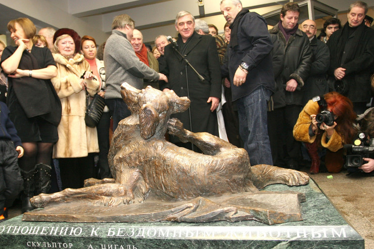 Памятник псу по имени Мальчик у метро «Менделеевская» считают аналогом ХатикоКроме того, с начала нулевых артистка принимает активное участие в акциях зоозащитников. Так, именно Камбурова была председателем общественного Совета по созданию первого памятника бродячей собаке «Сочувствие».