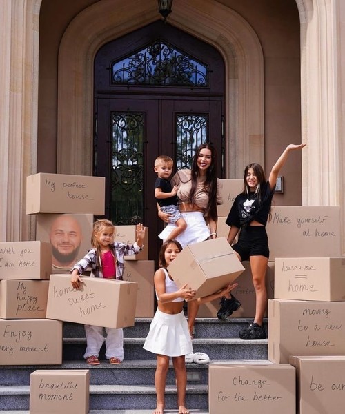 Звездная семья обосновалась на новом месте два дня назад Бизнесвумен опубликовала кадры, на которых позирует с дочками и сыном возле двери нового особняка. Дети радостно держат коробки, а на одной из них красуется… портрет Джигана. Оксана объяснила, в чем дело.