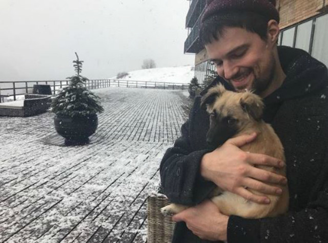 Актер мечтал завести лабрадора, пока не подобрал брошенного щенка ГрушуОни гуляли от Тверской до Петровки, тем более что Зуева обожала ходить пешком, а не ездить на автомобилях. Затем актер умчался на репетицию в Петербург, а Ольга улетела на съемки в Нью-Йорк. Вскоре артист позвал коллегу по цеху на свидание, и с этого момента для брюнетки началась жизнь на две страны.