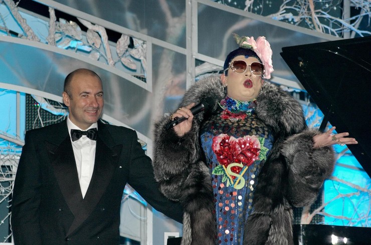 Вчера в Киеве украинский певец Андрей Данилко устроил благотворительный концерт. Во время шоу музыкант, находясь в сценическом образе разбитной проводницы Верки Сердючки, озвучил очередной антироссийский лозунг.